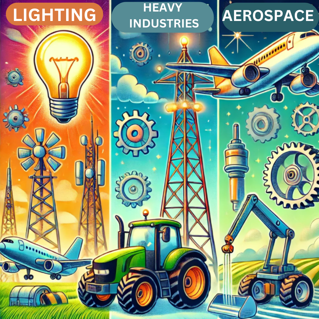 We Specialize at Transportation, Lighting, Construction & Agriculture, Hydraulics, Renewable energy, Electrical & Power, Aerospace, Oil & Gas and Telecommunication